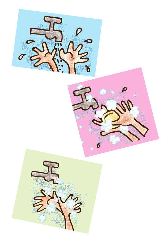Later Riya showed Rohan the proper way to wash hands. “Wet your hands and turn off the tap. Then rub in some soap on the palms, the back of the hands and between the fingers. Scrub hands for twenty seconds! Now, it’s time to rinse off and dry!” “But that’s a long time!” “Remember my secret?” Rohan smiled.