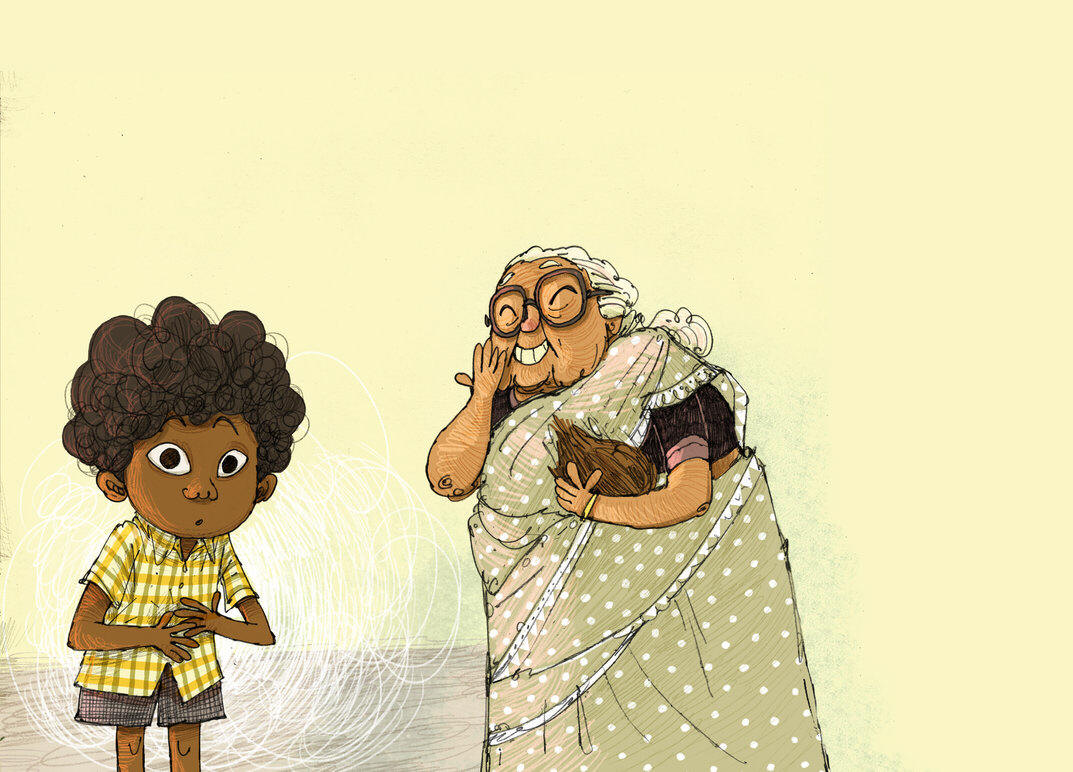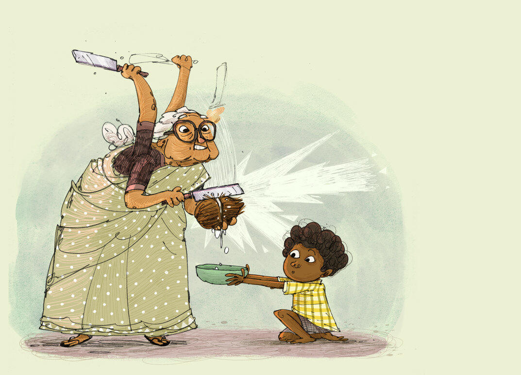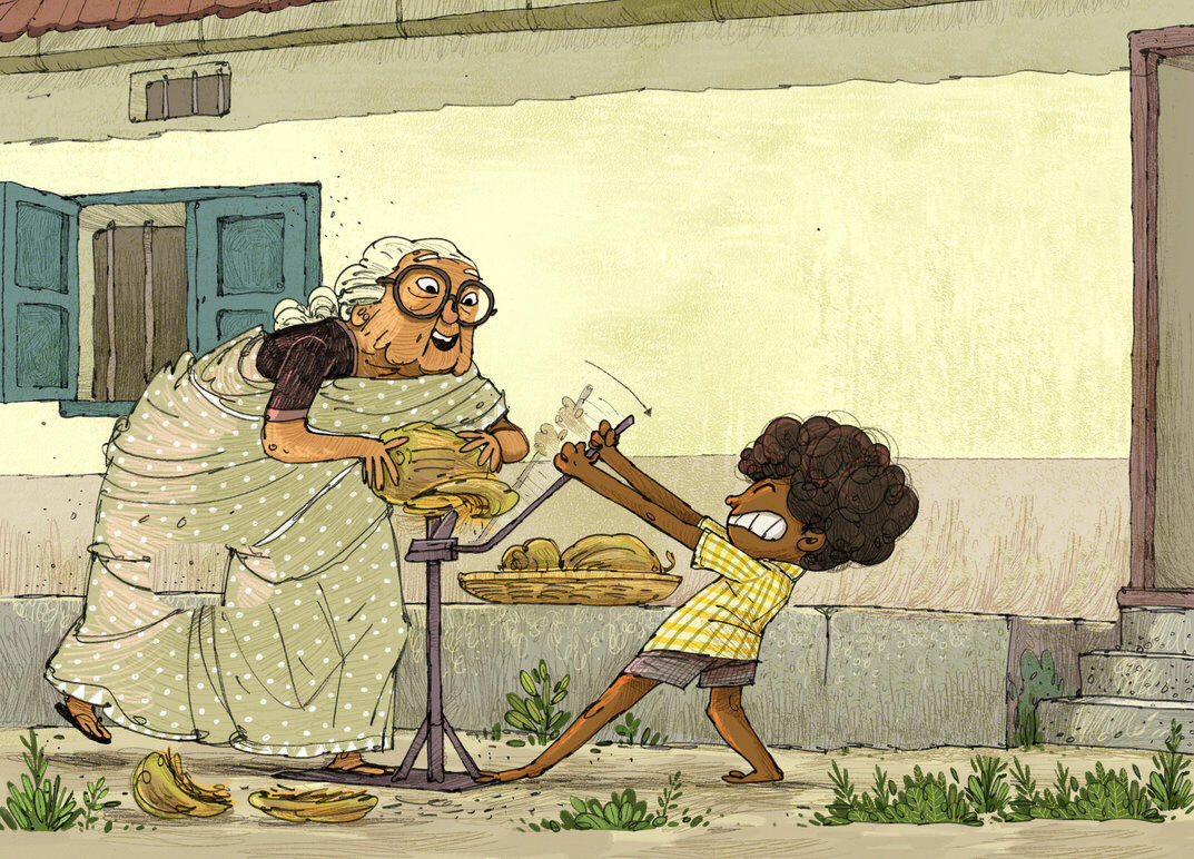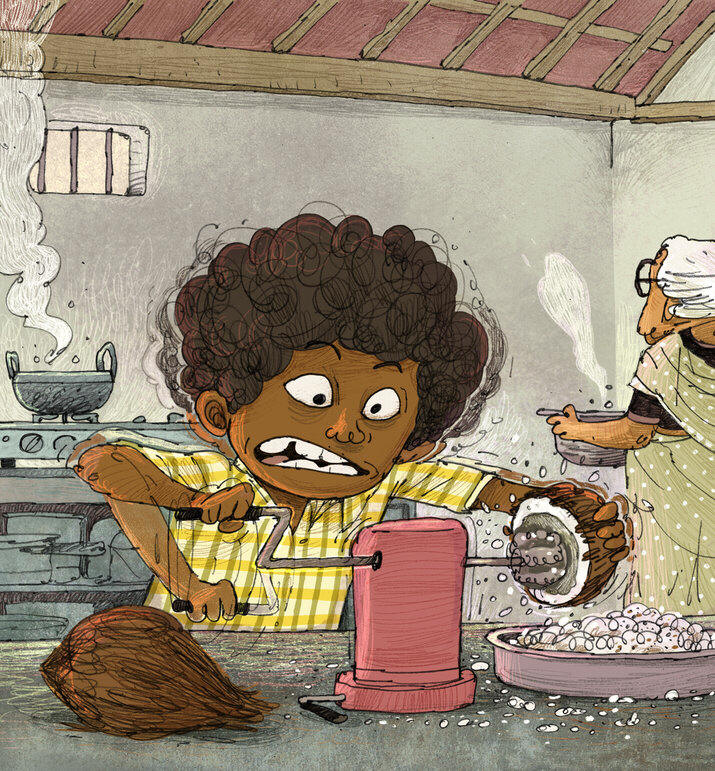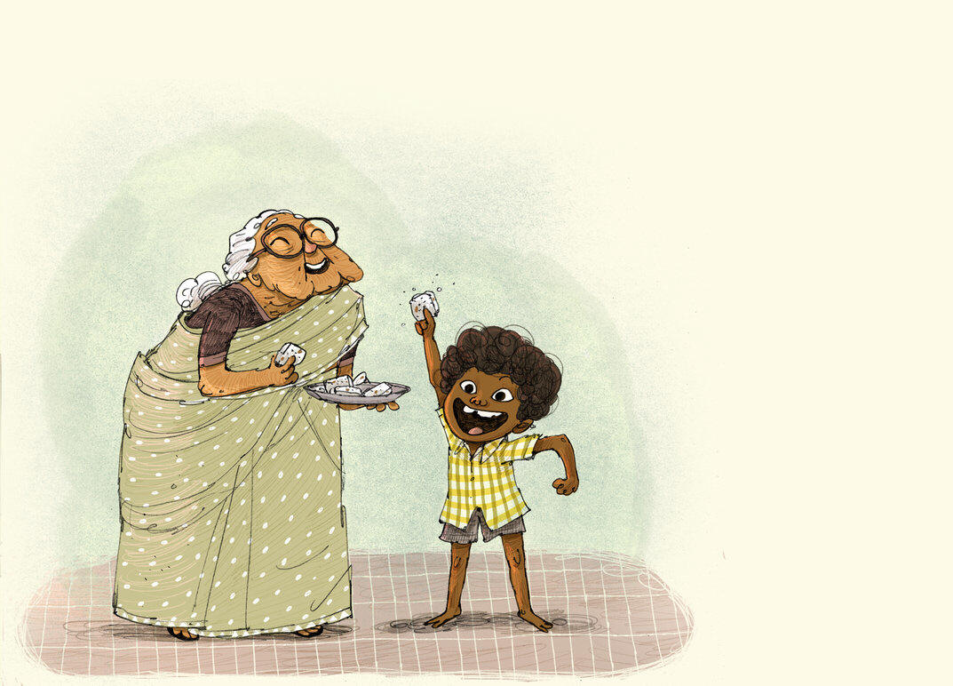 "Ammachi! Ammachi! Could we make coconut barfi today?" Sooraj asked his grandmother. "PLEEEEEAASE?"